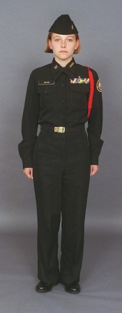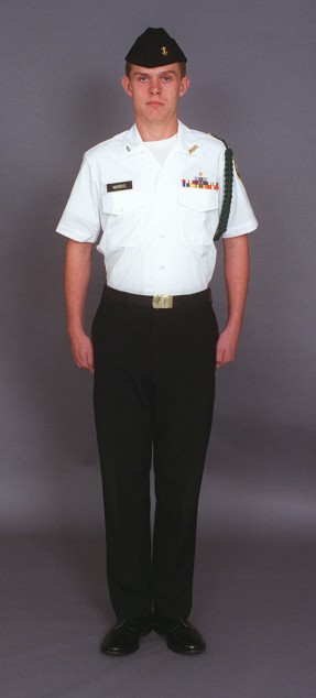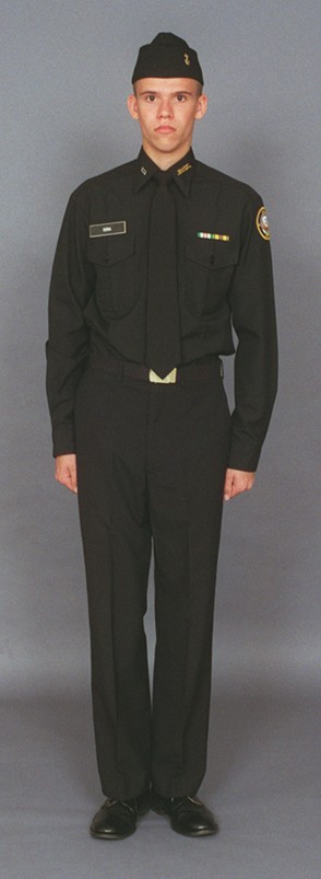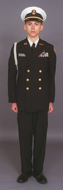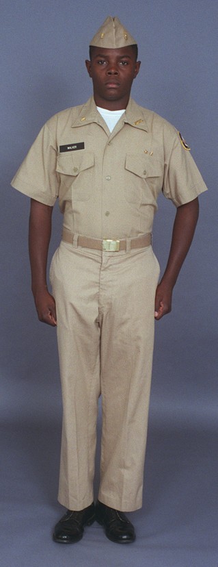 1. The Rank & J-Bar should be postioned 1 7/8� in from the end of the lapel 2. The Anchor/Rank should be postioned 1 1/2� above the bottom of the cover and it should also be postioned 2� out from the center. 3. The Service Stars/Name Plate should be postioned 1/4� above the top of the pocket. 4. NO SPECIAL AWARDS OR RIBBONS SHOULD BE WORN! |
